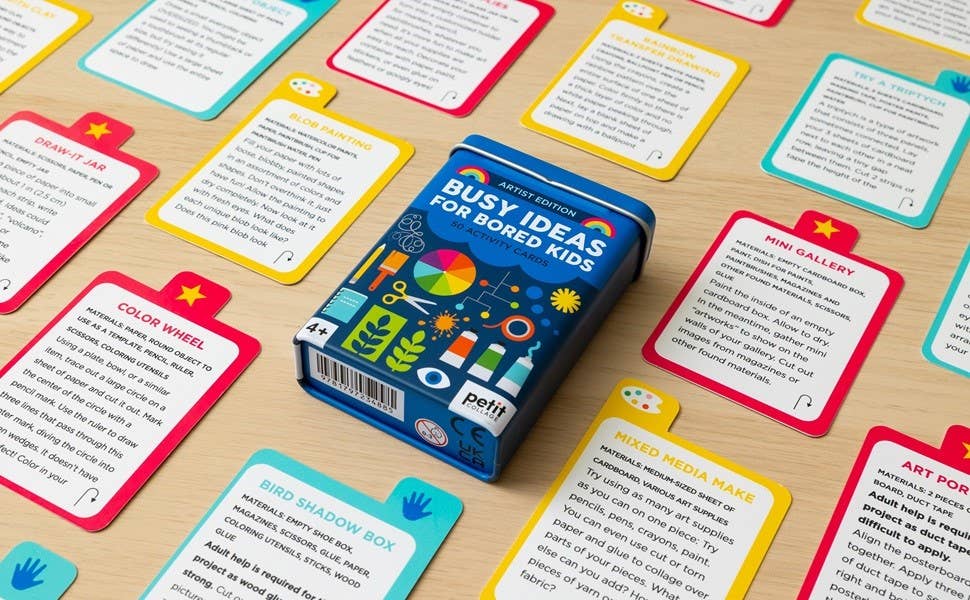 Need some ideas to brighten up your kid's days? Spark creativity and imagination, or get them up and active and away from screens? Pick a card from Busy Ideas for Bored Kids: Artist Edition!